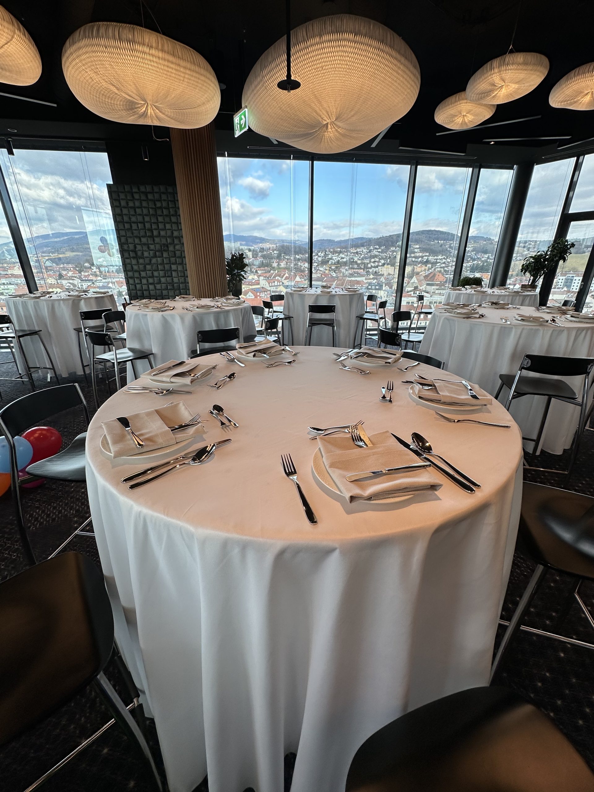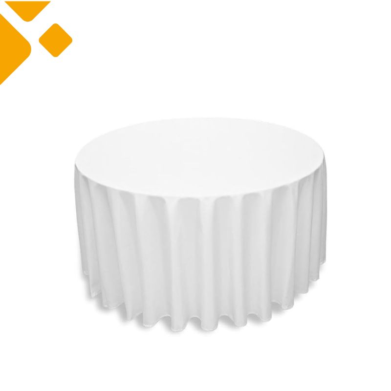 Weiße Tischdecken zur Miete für runde Tische (Ø 305 cm) – Eleganz für Ihr Event!